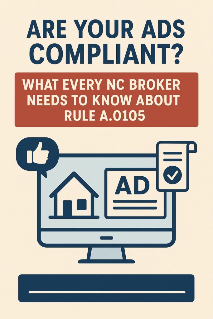 Every advertisement you publish must follow NCREC License Law and Rules—specifically Rule A.0105, which governs how brokers advertise real estate and brokerage services.